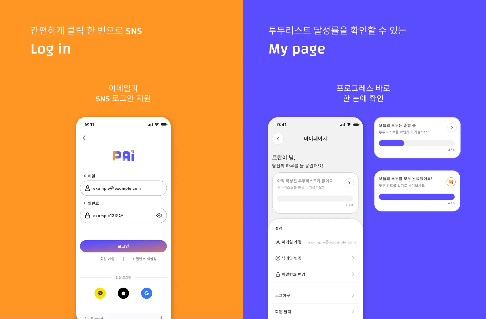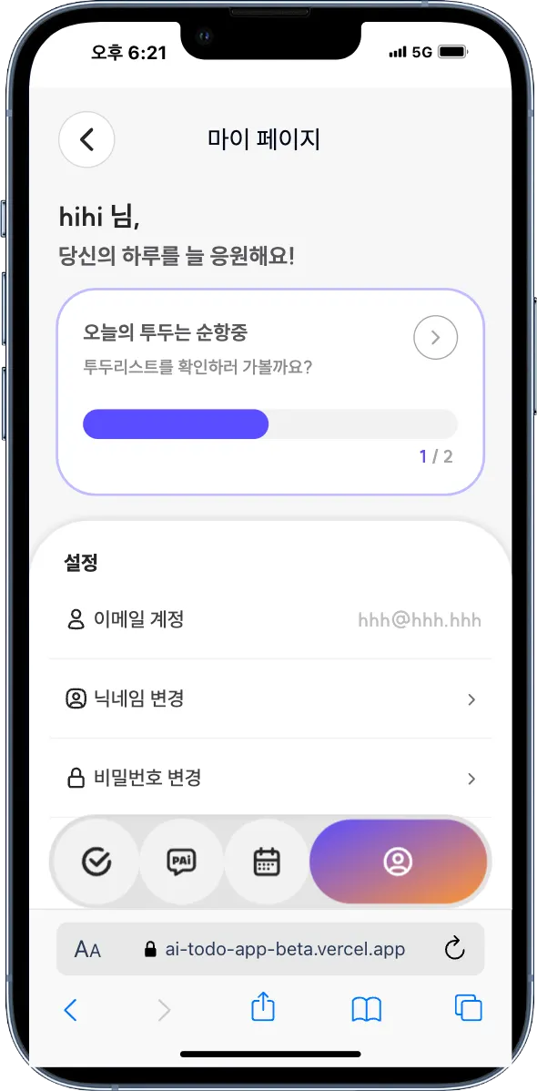 마이페이지에서 투두 진행 상황을 확인하고 개인정보를 변경하세요