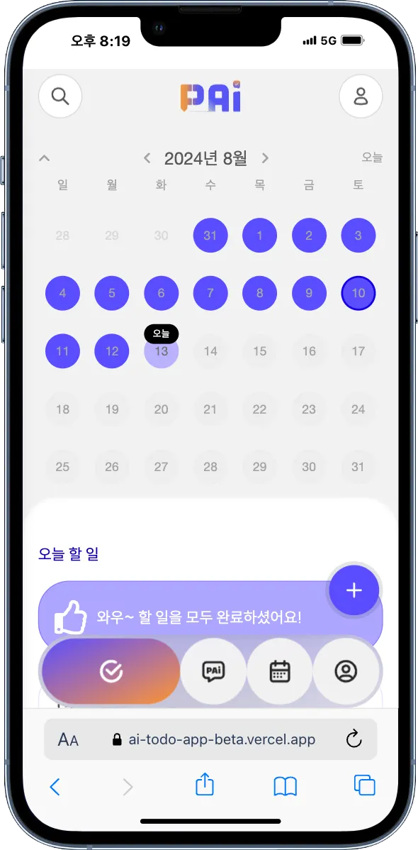 AI 챗봇 메이트가 작성하고, 추천해주는 Todo list