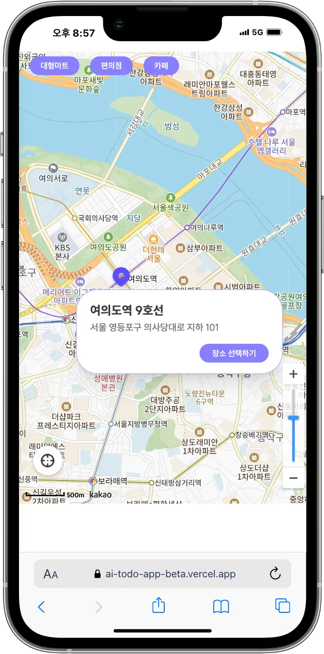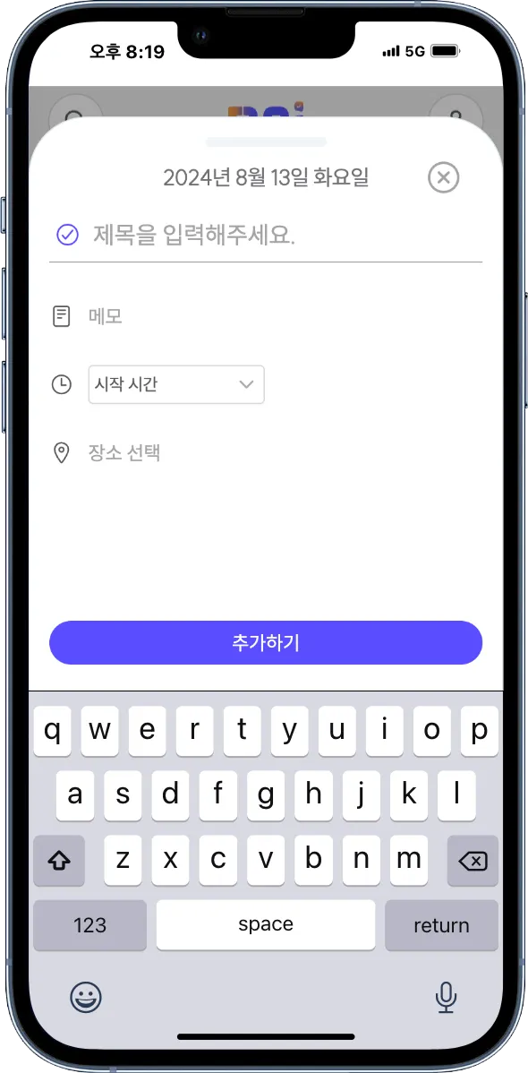지도 기반 위치 정보를 추가하고, 시간까지 설정하는 상세한 일정 기록