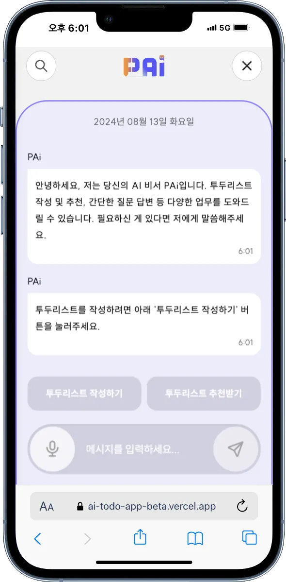 AI 채팅으로 작성하고, 추천받는 투두 리스트