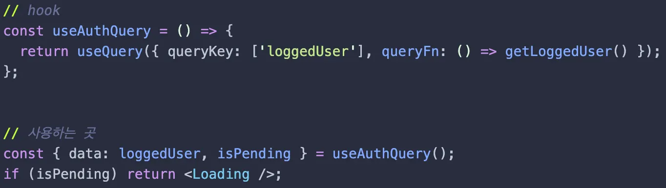 useQuery를 통해 로딩 상태와 데이터를 분리하여, 초기 렌더링 시 데이터 불확실성으로 인한 불필요한 로직 제거