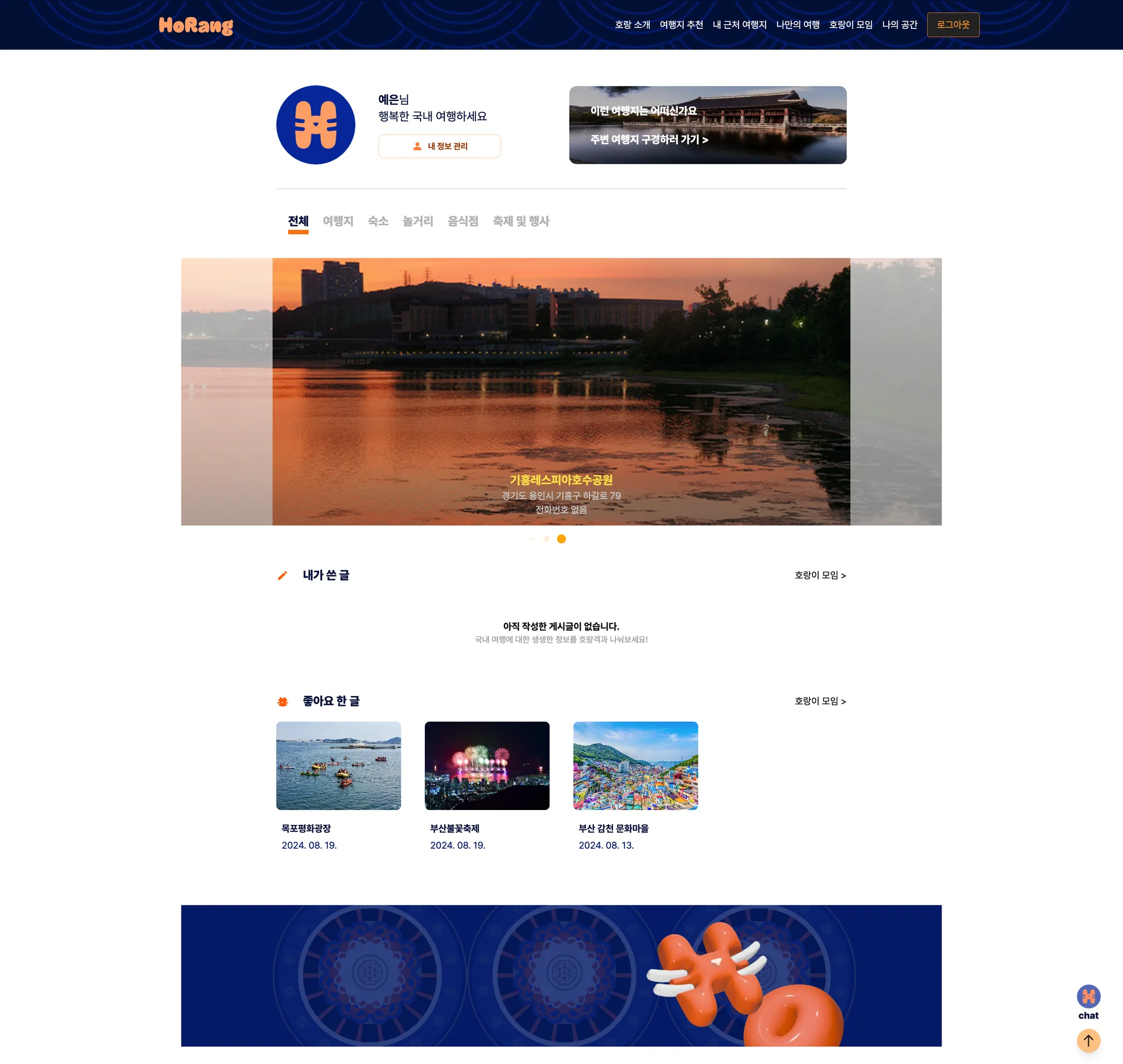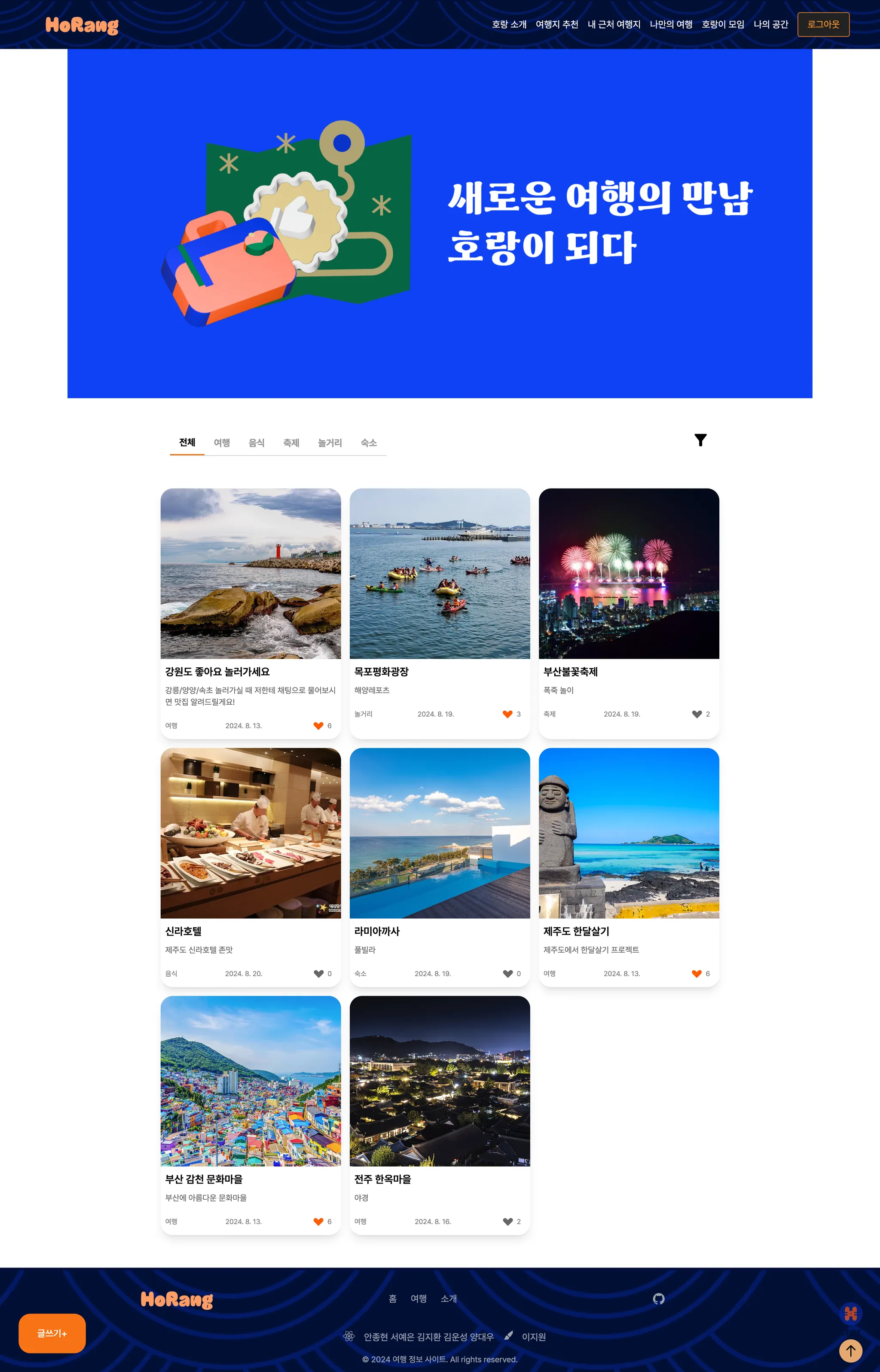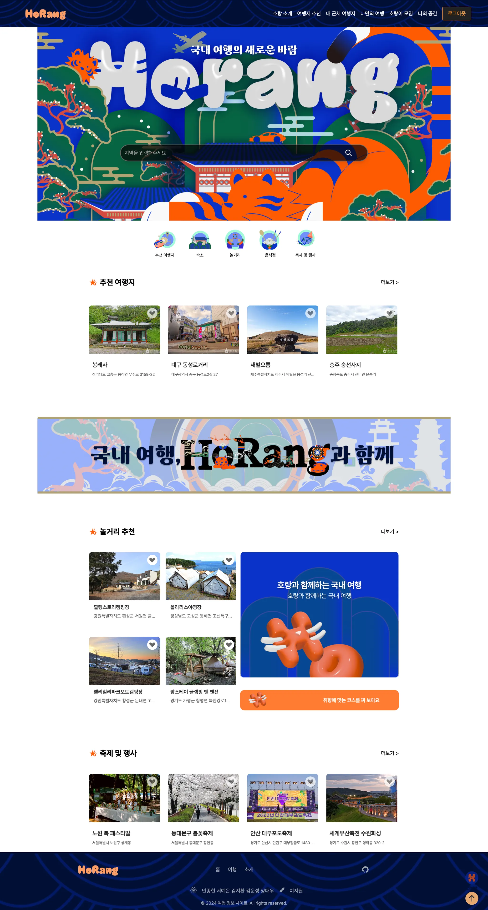국내 여행 소개, 내 취향 여행지 추천 및 여행객 소통의 장 “호랑”