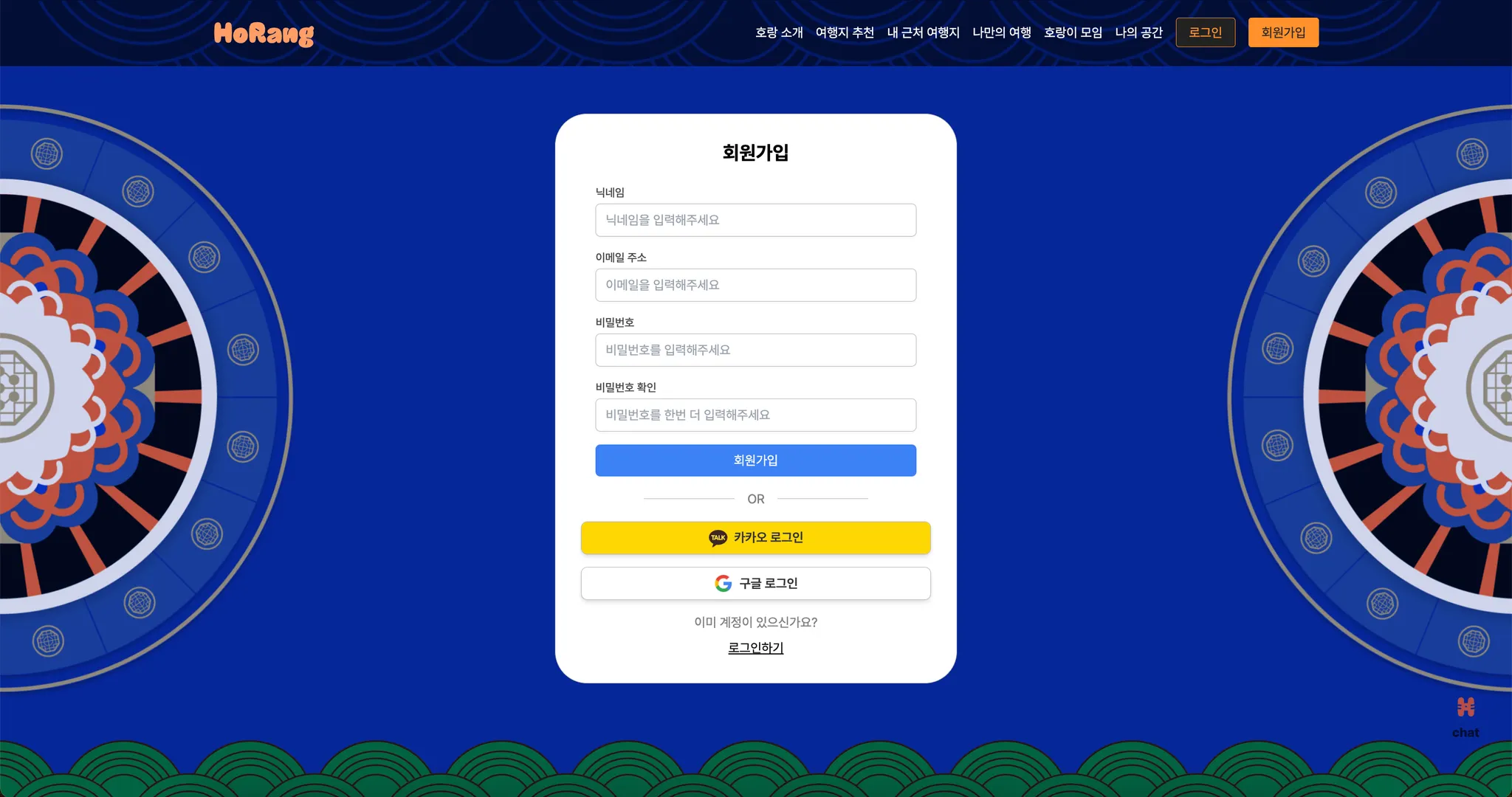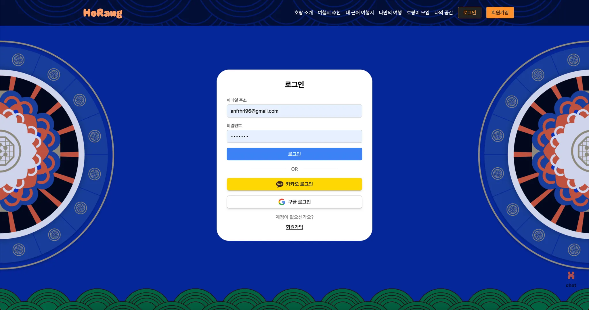 호랑은 기본적인 국내 여행 정보를 제공하지만 내 근처 여행지, 나만의 여행 등 맞춤형 여행 정보 제공을 위해 로그인 기능이 필요합니다.