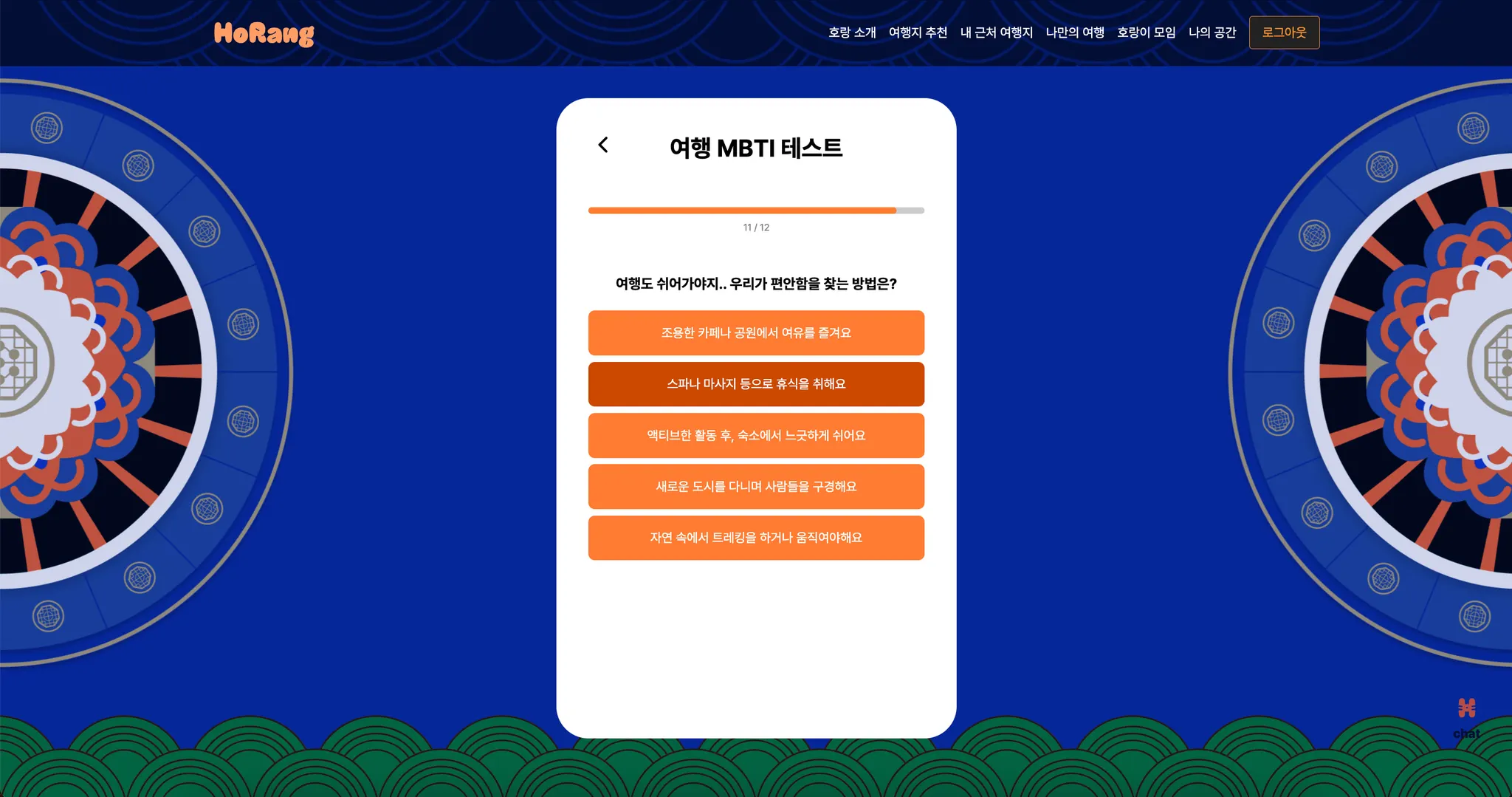 심리테스트와 같이 간단한 질문을 통해 여행객의 여행 MBTI를 호랑이 유형으로 정의해줍니다.